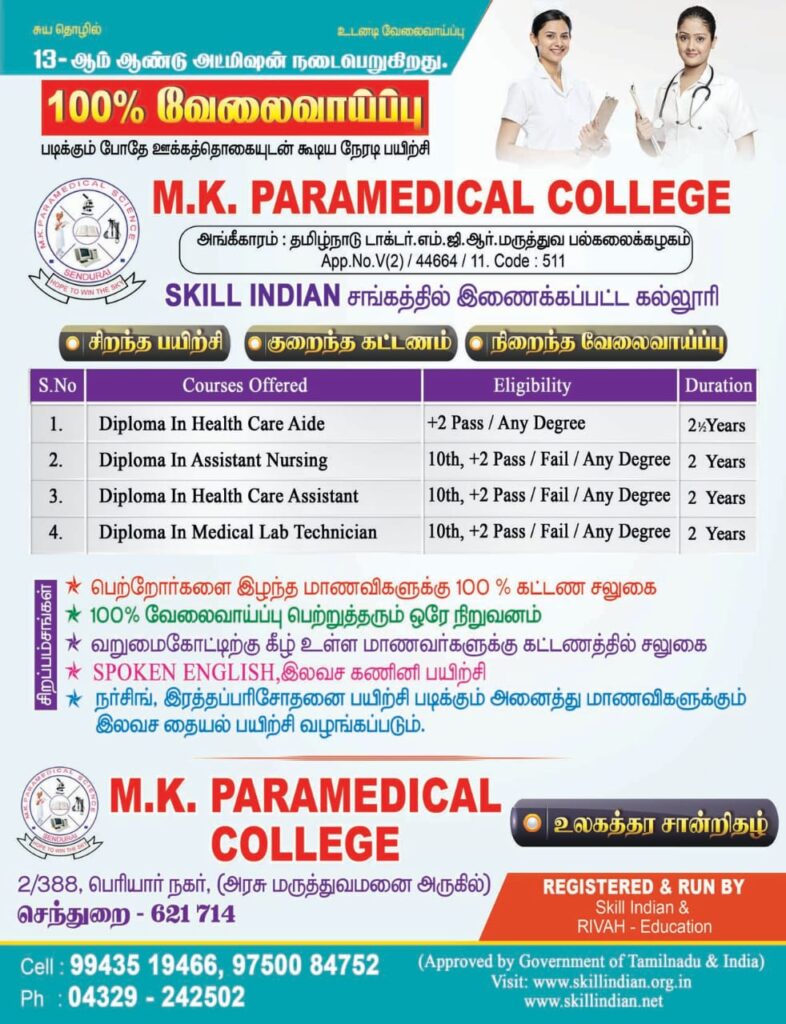 Diploma in Medical Lab Technology (DMLT)-2 வருடம்,